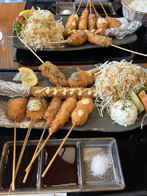 串揚げ8本セットや薩摩黒豚のとんかつなどランチメニューも充実