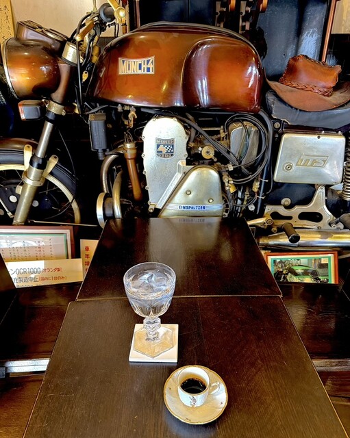 中に入ると既に一組お客様がいました。展示されている古い「ミュンヒ」の前の席に座りました。マスターより諸々の説明があり、
