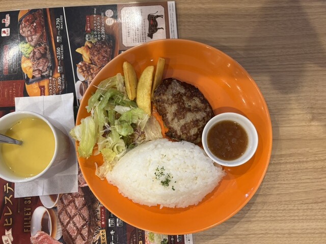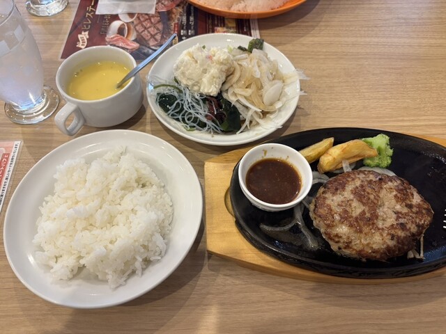 平日お昼頃に伺いました。 お客さんはいっぱい入ってますが待つ事なく入れました。 受付から席までの案内は全て自動化されています。 私は手ごねハンバーグ(803円)のランチプ... 詳細を見る