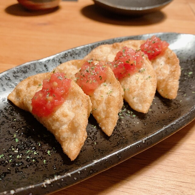 熟練職人が五日間かけて丹念に仕込む「秘伝のだし」を練り込んだ、パリパリの羽根つき「うす皮」焼餃子をはじめ、個性豊かな餃子を17種類ご用意しております。愛媛県産ヤリイカ、天然大海老、泥付き有機レンコン、イタリア産ポルチーニ茸を用いた餃子の数々は他では召し上がることは出来ません。他にも手作りの創作料理、70種類のドリンクを取り揃えております。家族やカップルでの食事、大切な人とのお酒の席にお越し下さい。
