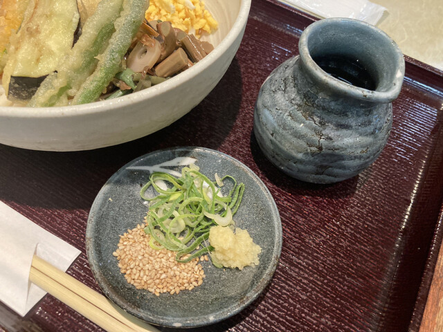 当店ではうどんの麺・出汁にこだわり季節により変化させております。 うどん麺において塩は沖縄の天然塩又海洋深層水のにがりを加えさらに季節により産地にもこだわっています。 そばは通常の蕎麦の中に含まれているルチンをより多く摂取できるよう蕎麦の若葉(若葉粉)の粉末を使用。身体にやさしい、こだわりの出汁でお召し上がり頂けます♪和食のメニューも多数ご用意しています。 |