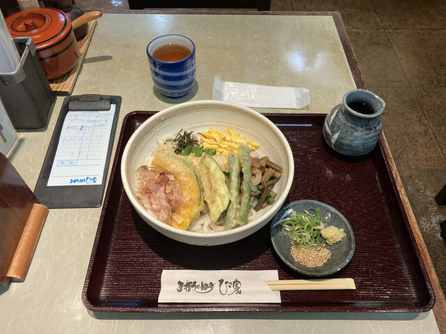 近鉄南大阪線・河内松原駅からプロムナードで直結、市街地再開発ビル「ゆめニティまつばら」の2階にあるうどん店です。10時の開店直後に訪ねました。