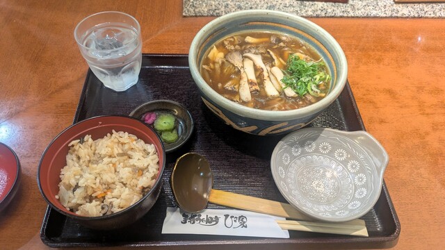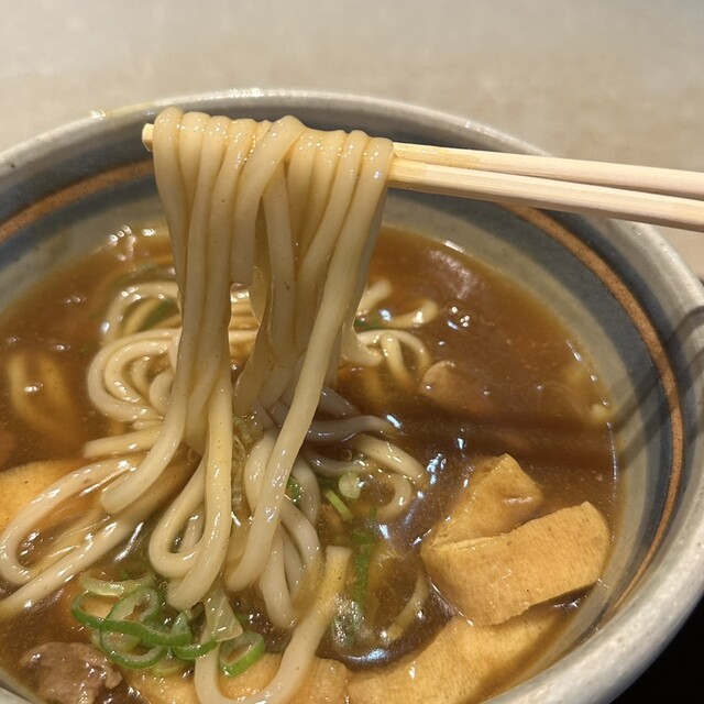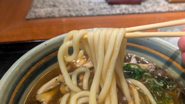 カレーうどんは、しっかりとろみのある和風仕立て。スパイスよりもだしが前に出ていて、最初の一口でほっとします。