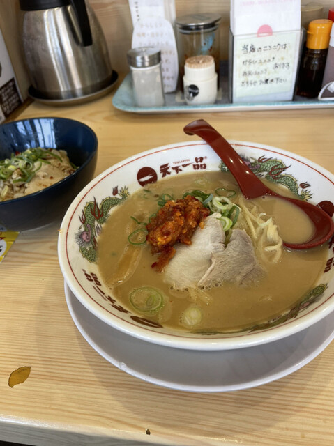 本日は久々に天下一品 松原三宅店に訪問して来ました♪ 13時15分に到着し店内は半分ほど埋まっている状態でした。 今回注文したのは以下のメニューです。 味噌ラーメン【97... 詳細を見る