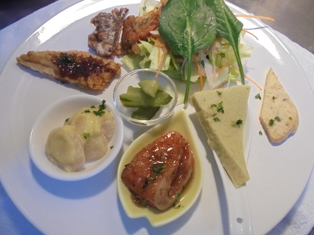 オードブルは、サラダたっぷりでどれも凝っていて美味しかった。スープは、きのこ...