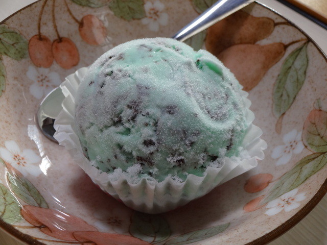 昔からチョコミントが大・大・大好き派なので、もちろんチョコミントを注文しました。