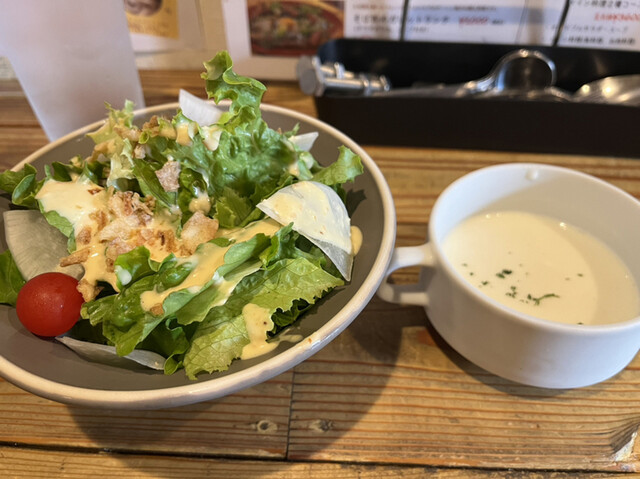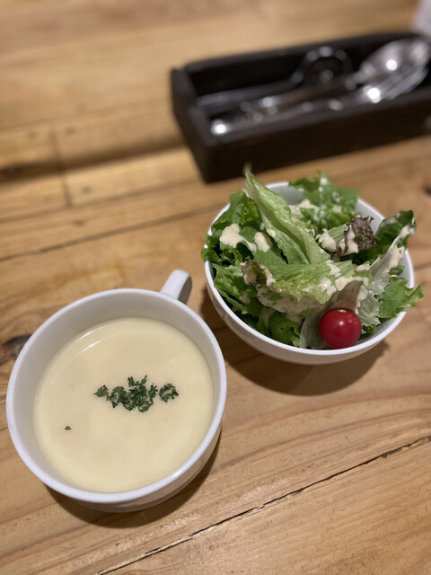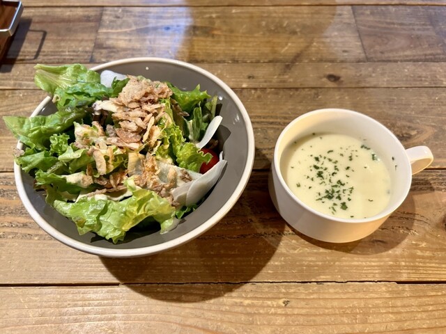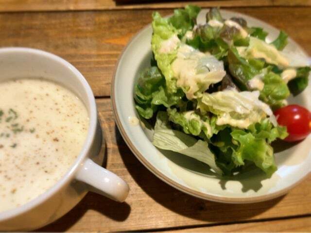 サラダ、スープ、パンorライス付き