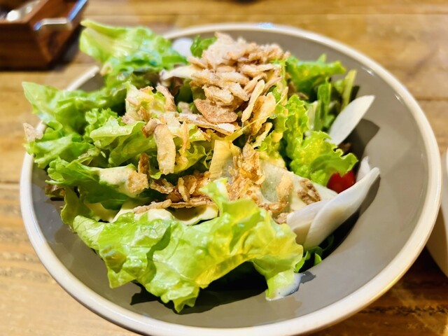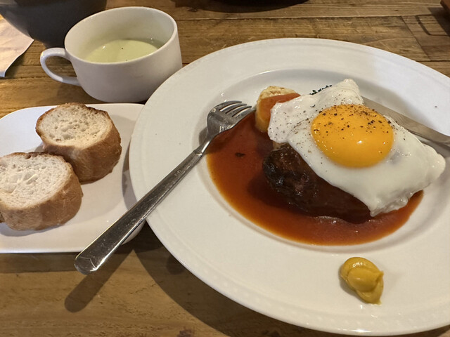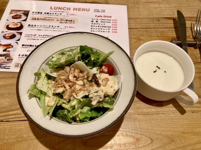 中は暗くて狭く、調理中の音が気になりました。ハンバーグランチを注文しました。ボリュームがあり、サラダがモリモリで、美味しかっ...