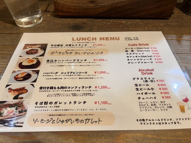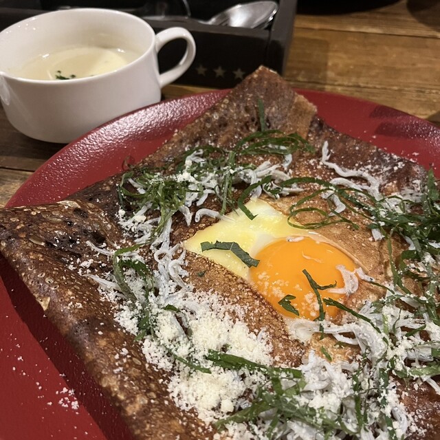ランチは、土日祝限定の生パスタ、ガレット、ハンバーグがありました。生パスタもとても気になったのですが、前の日にパスタを食べたなぁと思い、しらすと大葉...