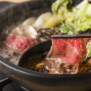 肉の専門家による九州食材を使用したすき焼きを堪能。高級感溢れる空間は記念日のご利用にも最適