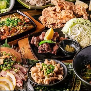 野菜串焼き・焼き鳥・焼き餃子・博多牛もつ鍋・おでんが魅力の人気居酒屋!焼き鳥1本100円~