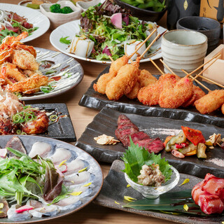 【東梅田駅3分】出汁が効いたたこ焼きとサクサクの串カツで乾杯☆お得な飲放付コースは宴会に◎