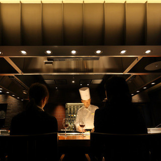 テーブルで仕上げる華やかなお料理が会食、記念日ディナーに大好評。ワインも豊富で個室完備。