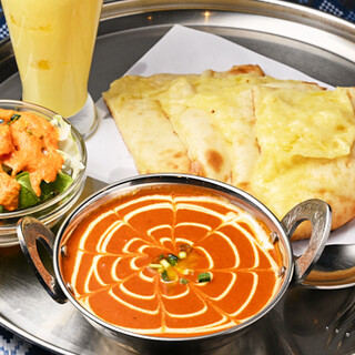 ボリューム満点のナンとともに、48種類のスパイスを使った本場インドカレーを堪能