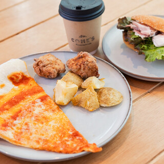 緑が溢れる癒しの空間で、加古川の食材を活かした50cmピザやサンドイッチに季節のメニューを