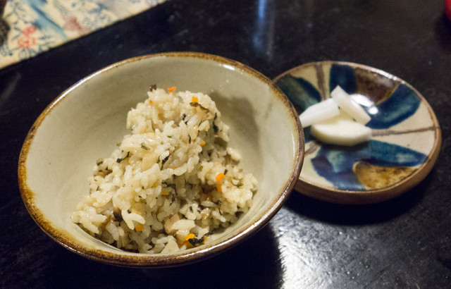 ご飯ものは ちりめん山椒などで白ご飯を食べた後に ふぐ雑炊