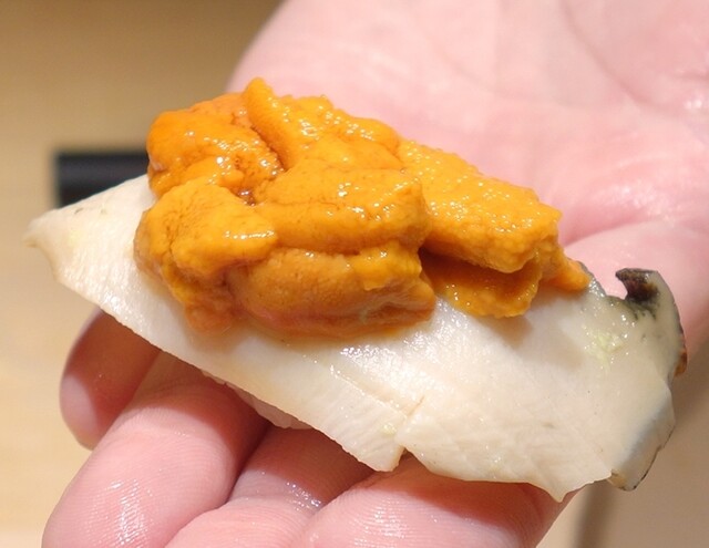 美国のウニ(ムラサキウニ?) これも素晴らしい旨味が感じられた。脱水処理をされたものだとか。