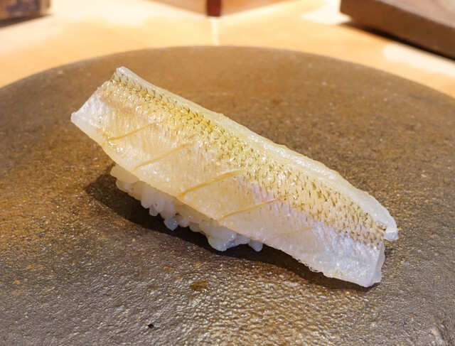 最初の白身は「アマテガレイ」明石のマコガレイとのことだが、これが凄い旨味をもっている代物だった。