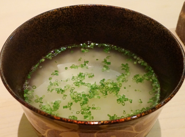 なかみ(豚ホルモン)のお吸い物 ホルモンの臭みが皆無なのは鮮度がいいものを使い、掃除が完璧なのだろう