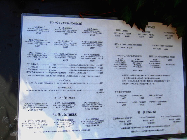 ①ハーフサンド(通常¥350)→¥150、②トースト(小)¥100→¥50