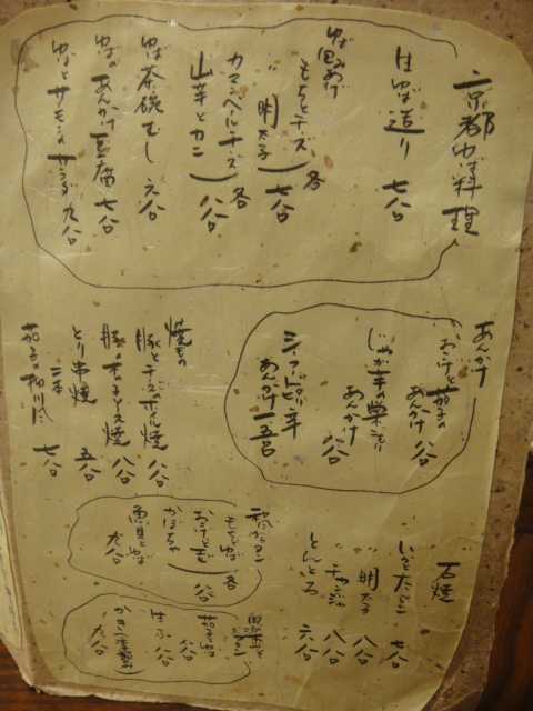 メニュー表も和紙を使うこだわり。