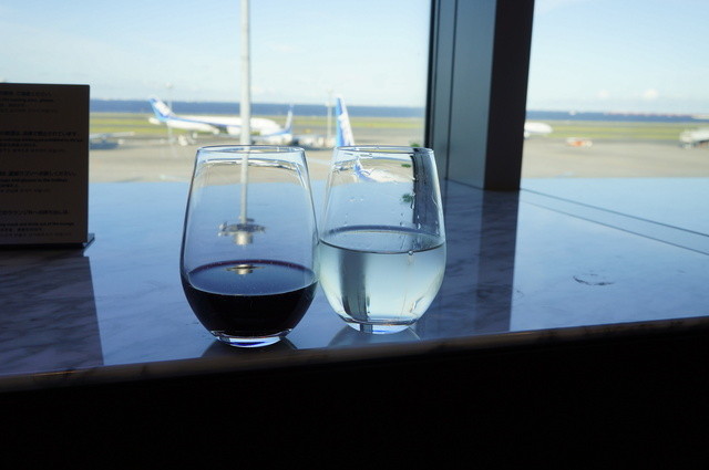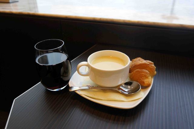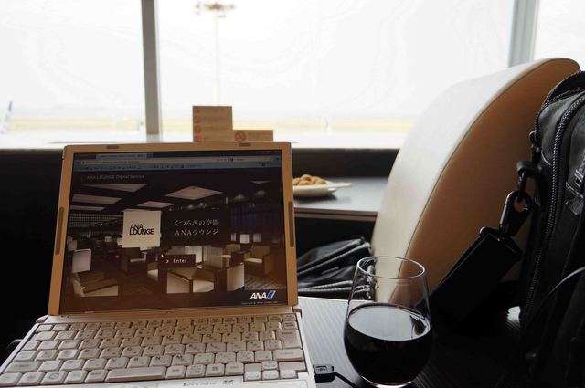 今日は、生ハムとチーズを持ち込みました。ラウンジで無料で頂ける物は、クラムチャウダー、クロワッサンのサンドイッチと赤ワイン(グレイスルージュ茅ヶ岳)と白ワイン(viognier)と焼酎(黒潮 屋久島)とウィスキー(響)と生おビールです。お酒はね。
