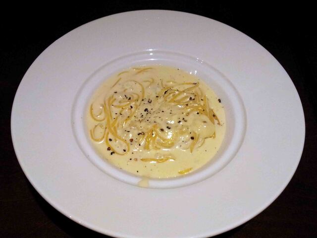 最初の自家製鴨胸肉のスモークはジビエ好きの方がうれしがりそうな、鴨の臭いが残ったスモークでした。これなら、パルマ産生ハムの方が私は好きです。パスタでは、私は、蝦夷鹿のラグー、細君は、3種のチーズ、クリームソースを選びました。蝦夷鹿のラグーも美味しかったのですが、3種のチーズ、クリームソースを少し貰ったら、こちらの方が美味しかったです。