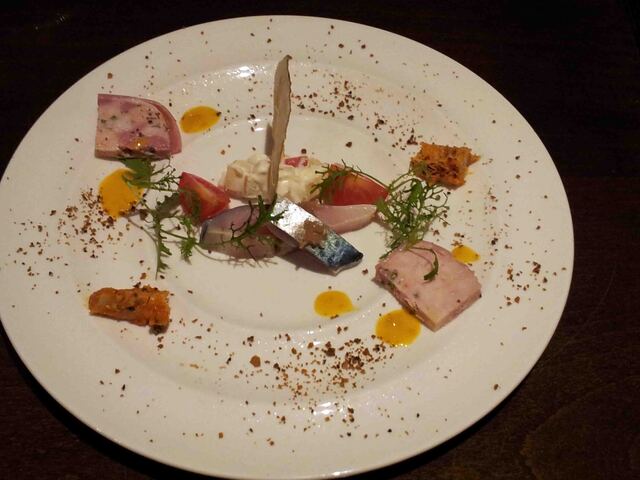 その他の前菜では、生からすみの載ったカンパチのローストや、バルサミコソースで煮たサンマなど、食材も、味付けも素敵でした。