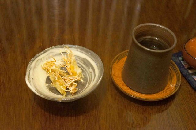 小食へたれの森の里5は、またせいろです。田舎そばも考えたのですが、つぶつぶのそば殻の入った、モソモソした田舎そばはあまり好きではないのです。最初に付き出しで、[a:otrlst,才巻海老]のお頭唐揚げが出ました。ビールが飲みたくなりますね。待つこと暫しでせいろが出てきました。ワサビは本生わさびですね。おそばの量は、やはり5~6口分ぐらいでしょうか。静岡の六合にある藪蕎麦屋の1~2口に比べれば、倍はある。