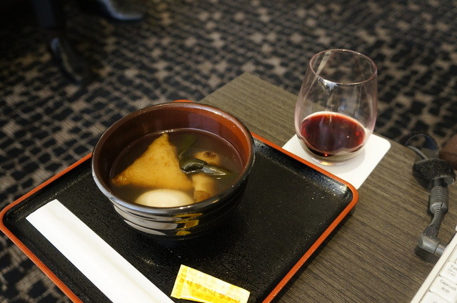 今からシャルルドゴール経由でスキポールに行くため、寝酒を飲みに来ました。電源付きの席に座り、インターネットで、オランダでの本日の宿の手配に忙しくしていたら(こんな泥縄的出張が多くなってきました)、地上係員様がワインとかき揚げ蕎麦を持ってきてくださいました。ワインはカベルネソービニオンということでしたので、写真を撮りにあとから伺いました。