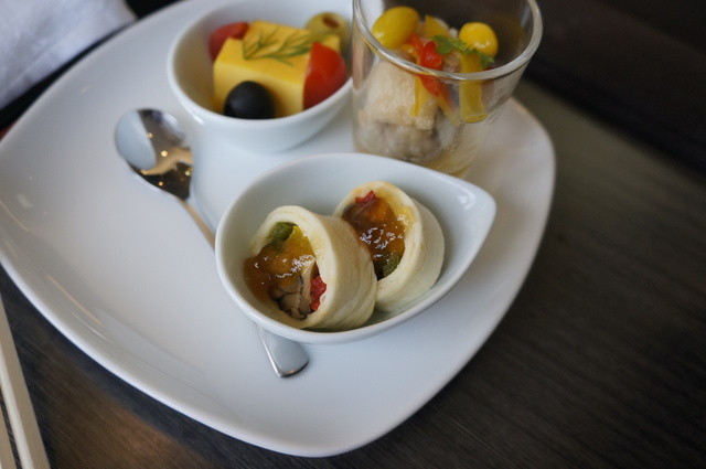 今回もスーパーエコノミーの航空券ですが、ビジネスシートが空いているとのことで、無料でそちらに移らせていただくため、ラウンジでは、このくらいにしておきました。