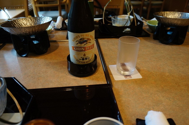 まず梅酒で乾杯して、先付とてっさを頂いていると、お酒が欲しくなりますね。細君からお酒の許可を頂き、ビールを2本頂きました。本来なら、日本酒を頂きたいところですが、日本酒を頼んだら、際限がなくなりそうなので、我慢しました。日本酒は宿泊の時の楽しみにします。(もう来れなかったら辛い)