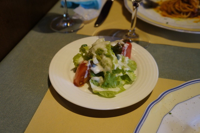 このサラダを食べていると、[a:otrlst,ヴィーノ・ビアンコ]が空になる。