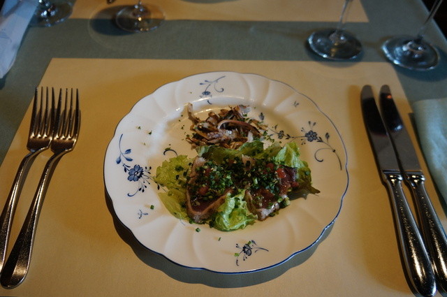 今回は、細君とディナーに来てみたいと、こちらに車で来てみました。行きは私の運転ですが、帰りは細君の運転の予定です。(キッパリ!) だって、こちらのお料理でワインを飲みたいのです。