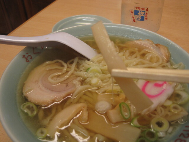 スープは、透き通っているものの味は濃く、麺を食べるとスープがよくからむ。