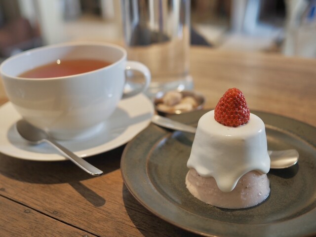 寒い日だったのでホットティーとデザートにババロアを頂きました。