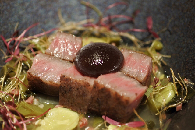 A5ランクのウチヒラは美しいレアな焼き具合。