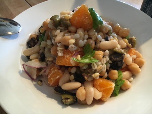 最初は豆や麦とネーブルオレンジのサラダでスタート イタリア南部シシリアのニュアンスを感じさせる美味しい皿だ。
