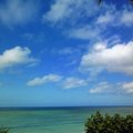海を見ながらのんびりスクランブルエッグとパンケーキを