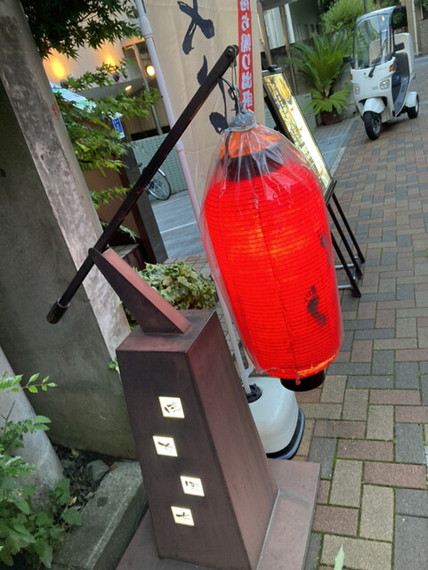 青山通りから場所を携帯で尋ねると、1本裏の細い通りに赤提灯が見えると告げられ、行ってみると言葉通り遠目にもはっきりと赤提灯が1つポツンと目に入りました。