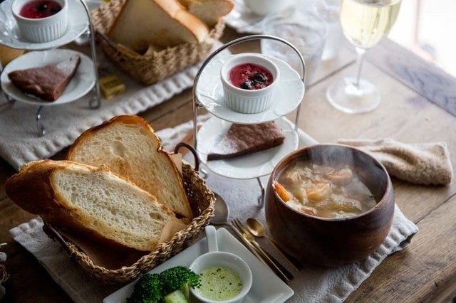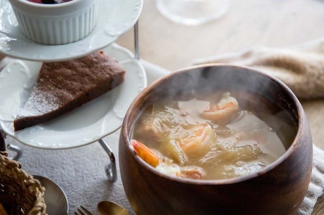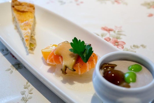 オードブルをいただいていると、ミニサラダとミニスープがサーブされた。