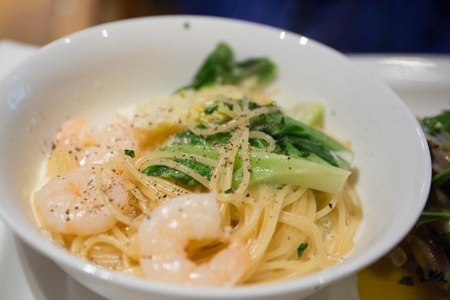 先に「車エビとブロッコリーのタリオリーニ」が届きました。