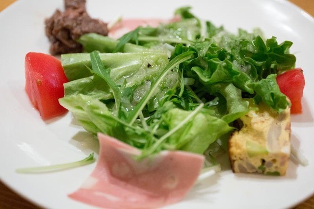サラダは葉物野菜にフレンチ系のドレッシング。どちらも美味しい。
