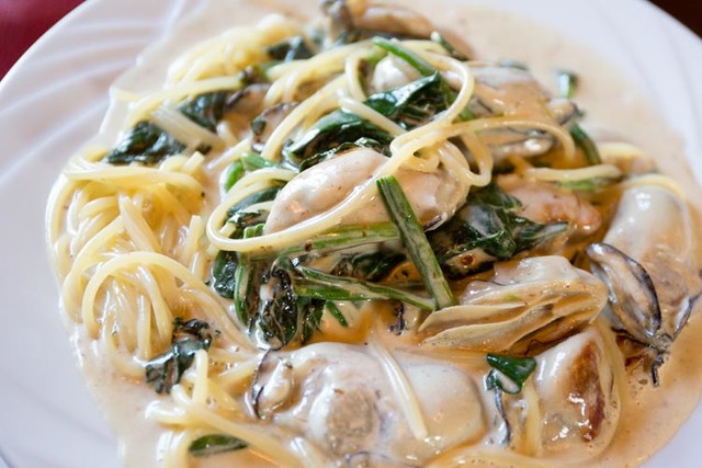 パスタは、「牡蠣のスパゲッティ(+100円)」「揚げナスとモッツァレラチーズのスパゲッティ」
