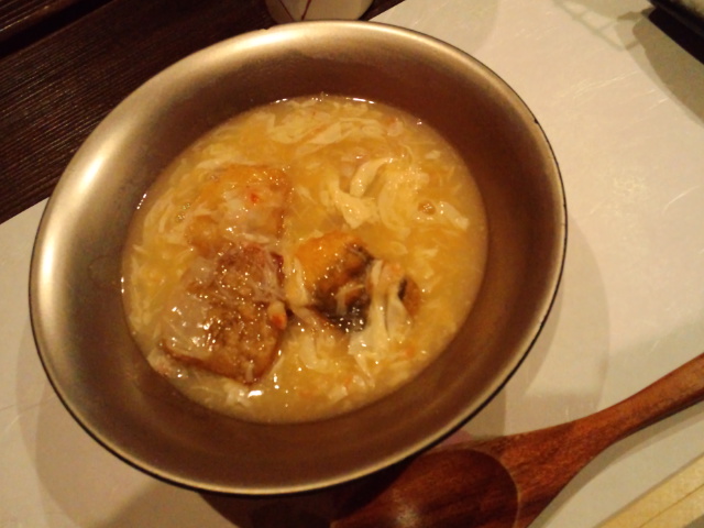 熱々でしっとりとした百合根まんじゅうの中から色々な具が出てきて、それがあんと絡まってとても美味しかったんですが、最初に出てきたお料理と、「百合根」で「あんかけ」というところがちょっとかぶってるな~と思いました。