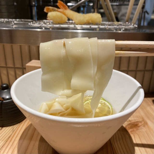 〆にはきしめんが無料で提供されるというサービスがあります、コレはうれしいですね。トッピングは有料ですが素では寂しそうだったのですだちを乗せてもらいましたが、さすがにあの太門のそれ、幅広でつるんとした食感がすごくイイですね、〆にはぴったりの一品でした。