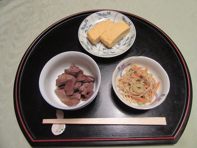 切干大根炒め・鶏白レバーしぐれ煮・出汁巻玉子