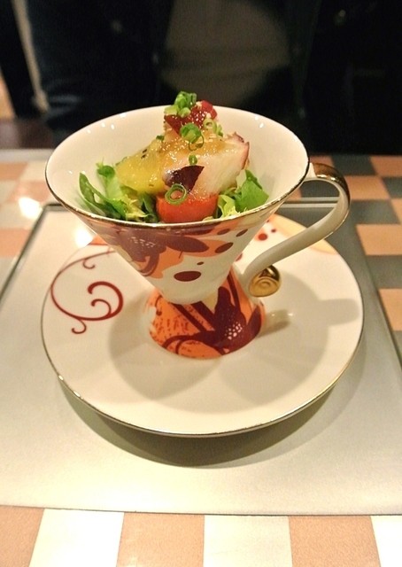 アミューズからしっかりお魚!!あっさりさっぱりしたソースが和えられてる玉葱と一緒に頂きます。