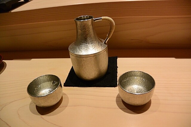 綺麗なすずの器で出ていましたよー!私的にはすっきりした辛口の日本酒で飲み易かったのですが、向こうにはまだ早かったようです(笑)きつい…ってほぼ私が飲んでましたww
