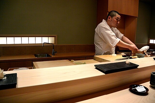 お店はカウンター7席のみですが、まつ本さんのような広い空間があるわけでもなく、だけど狭い感じもなく落ち着けます。